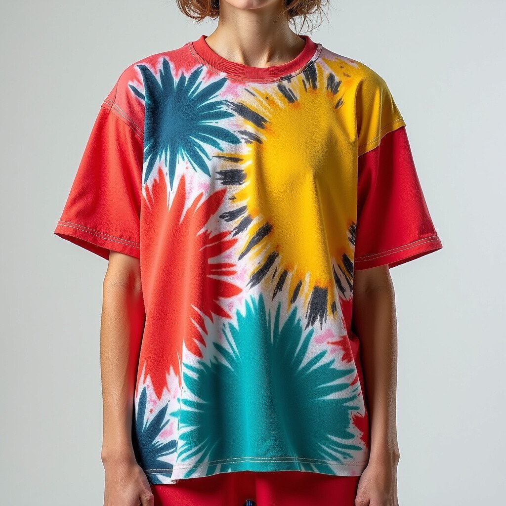 The benefit of this design is its mesmerizing effect, as the colors blend in mysterious, unpredictable ways. To enhance the cosmic vibe, pair your shirt with metallic accessories. Pro-tip: Use a black shirt as your base to make the colors pop even more.