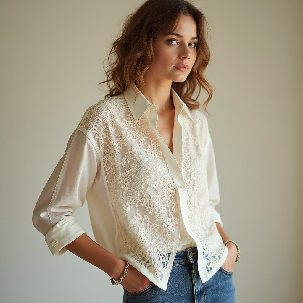 Attach lace in a spiral pattern over your shirt for a delicate touch. Lace adds a vintage, romantic vibe. It’s perfect for dressing up a casual outfit.