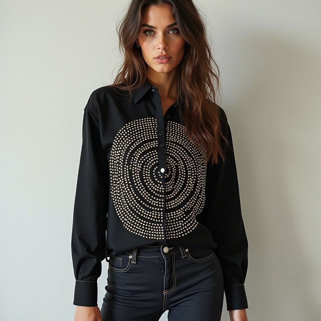 Add studs in a spiral pattern for an edgy look. It’s bold and perfect for those who love a rock-n-roll vibe. Studs are easy to apply and make a big impression.