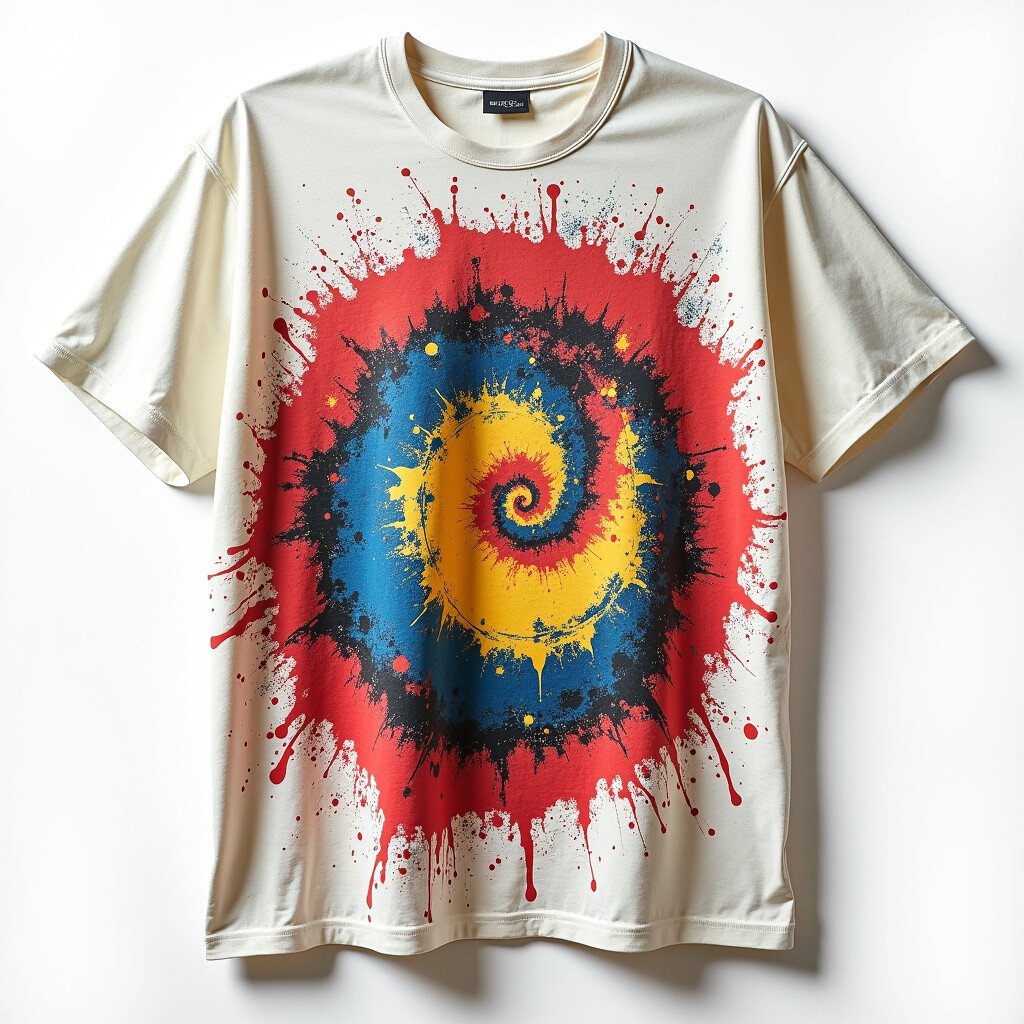 Use fabric paint to create a splatter effect around the spiral design. This technique makes each shirt a colorful masterpiece. It’s messy but loads of fun.
