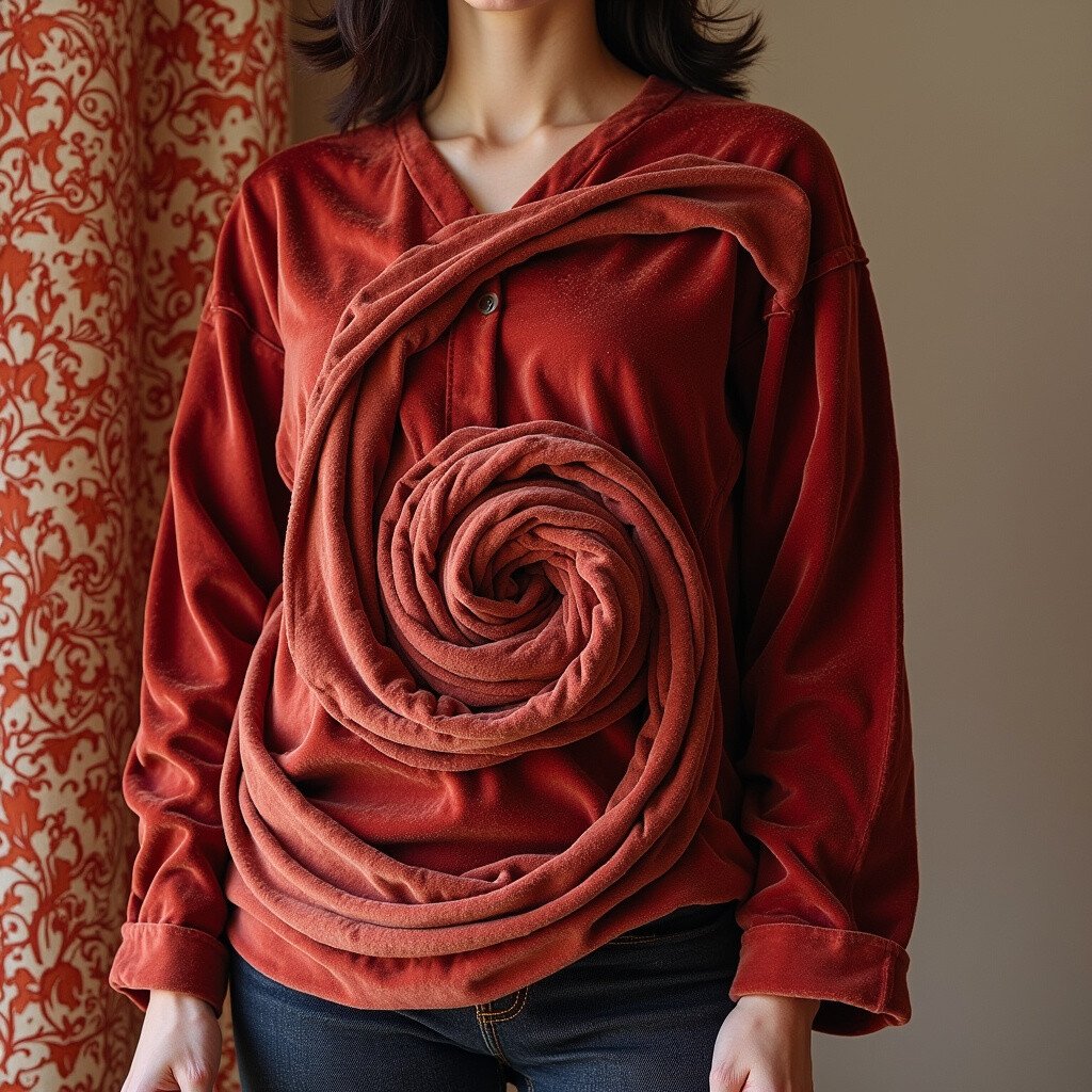 Sew velvet fabric in a spiral pattern for a luxurious feel. Velvet is soft and adds a touch of sophistication. Perfect for fall and winter outfits.