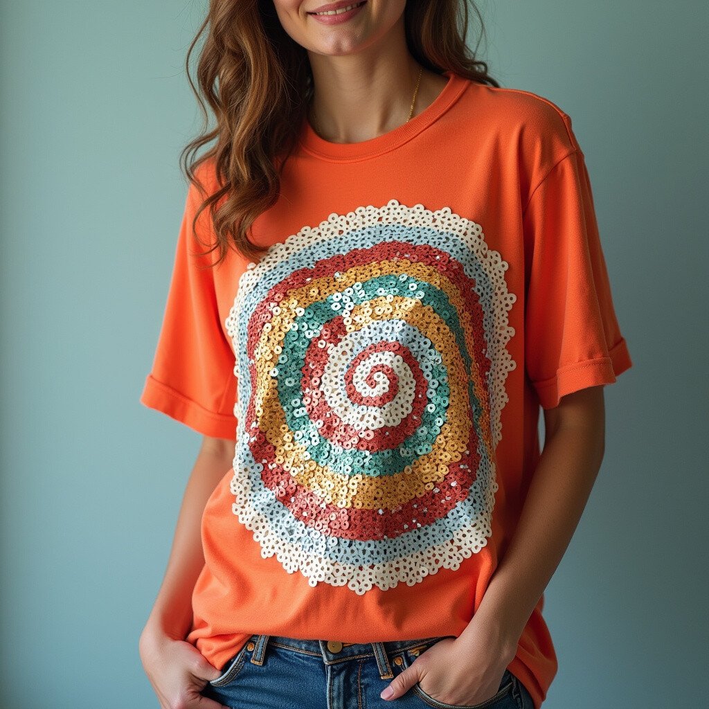 Sequins add a shimmery effect to your spirals. Sew them in a circular pattern for a dazzling look. It’s fun and eye-catching for parties.