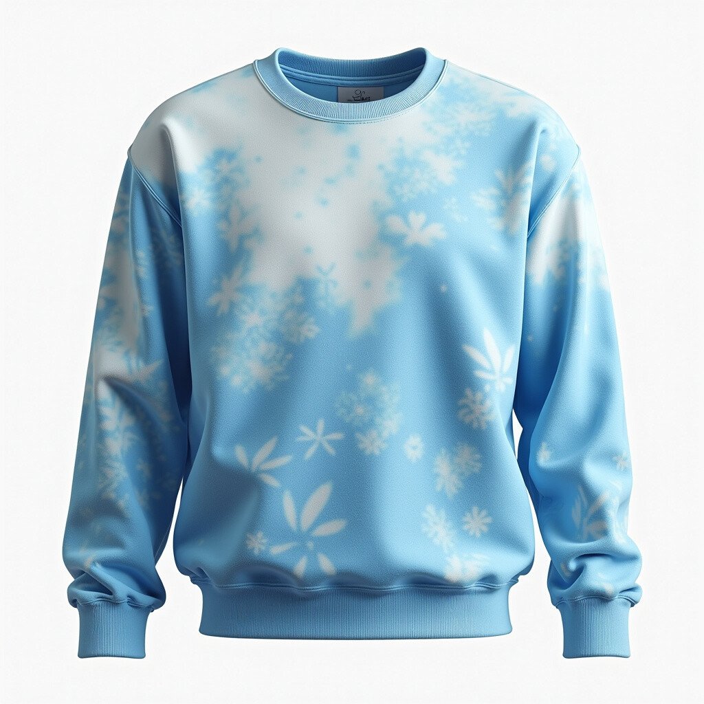 Cool shades of blue and white create a frosty, wintery effect. This sweatshirt is perfect for chilly days. It feels like a soft, snowy day.