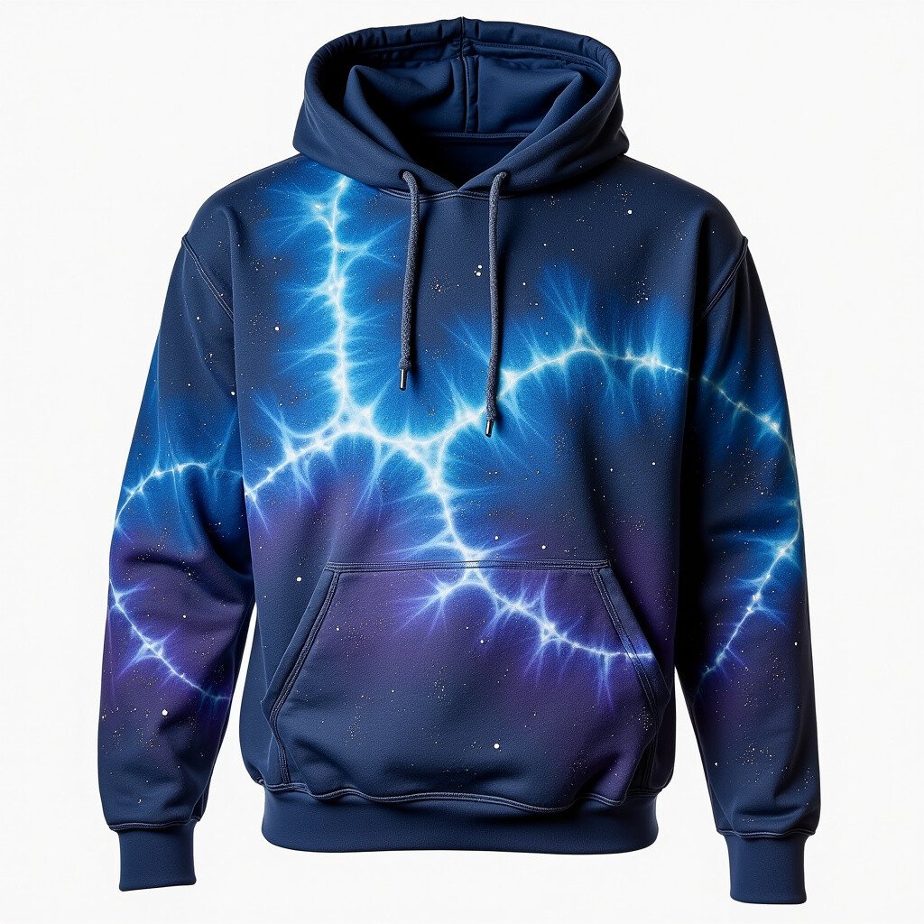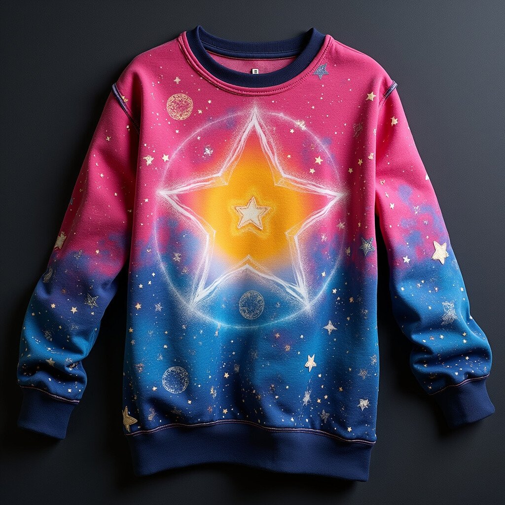 Imagine wearing the night sky! Deep blues and purples with specks of white create a cosmic effect. This sweatshirt is perfect for those who love space and mystery.