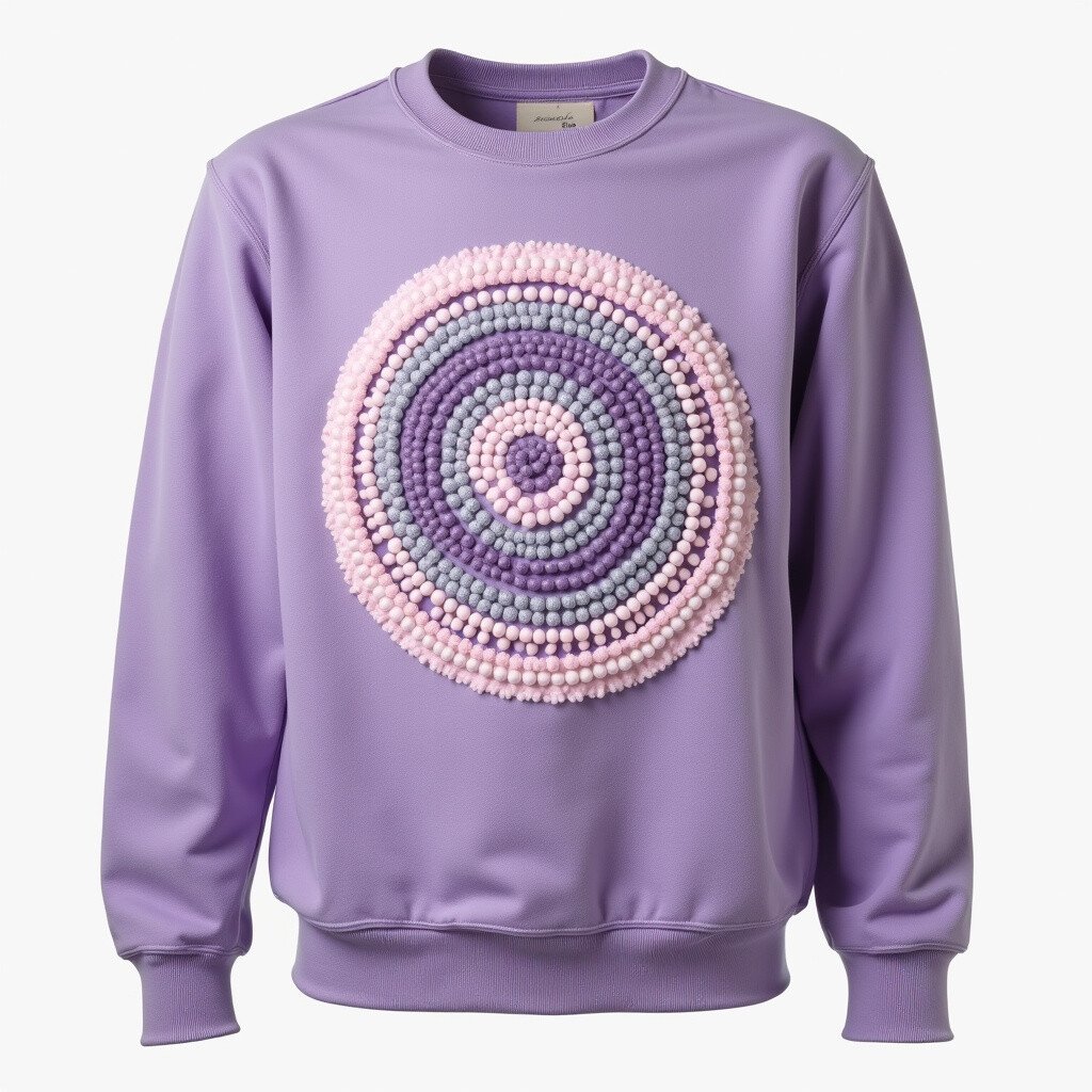 This sweatshirt features soft purples and lilacs, like a field of lavender. It’s relaxing and calming.