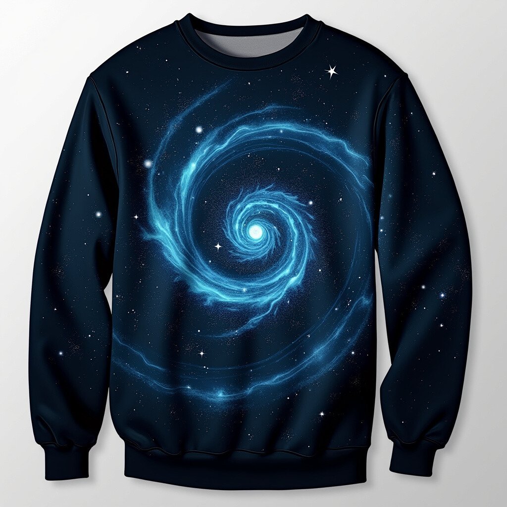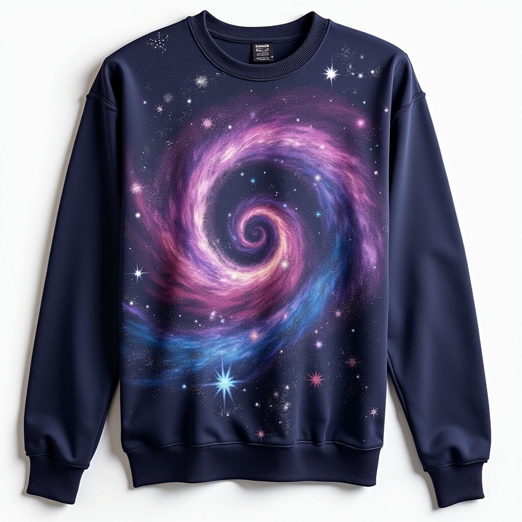 Imagine the galaxy wrapped around your shoulders! This sweatshirt features deep purples and blues with silver accents.