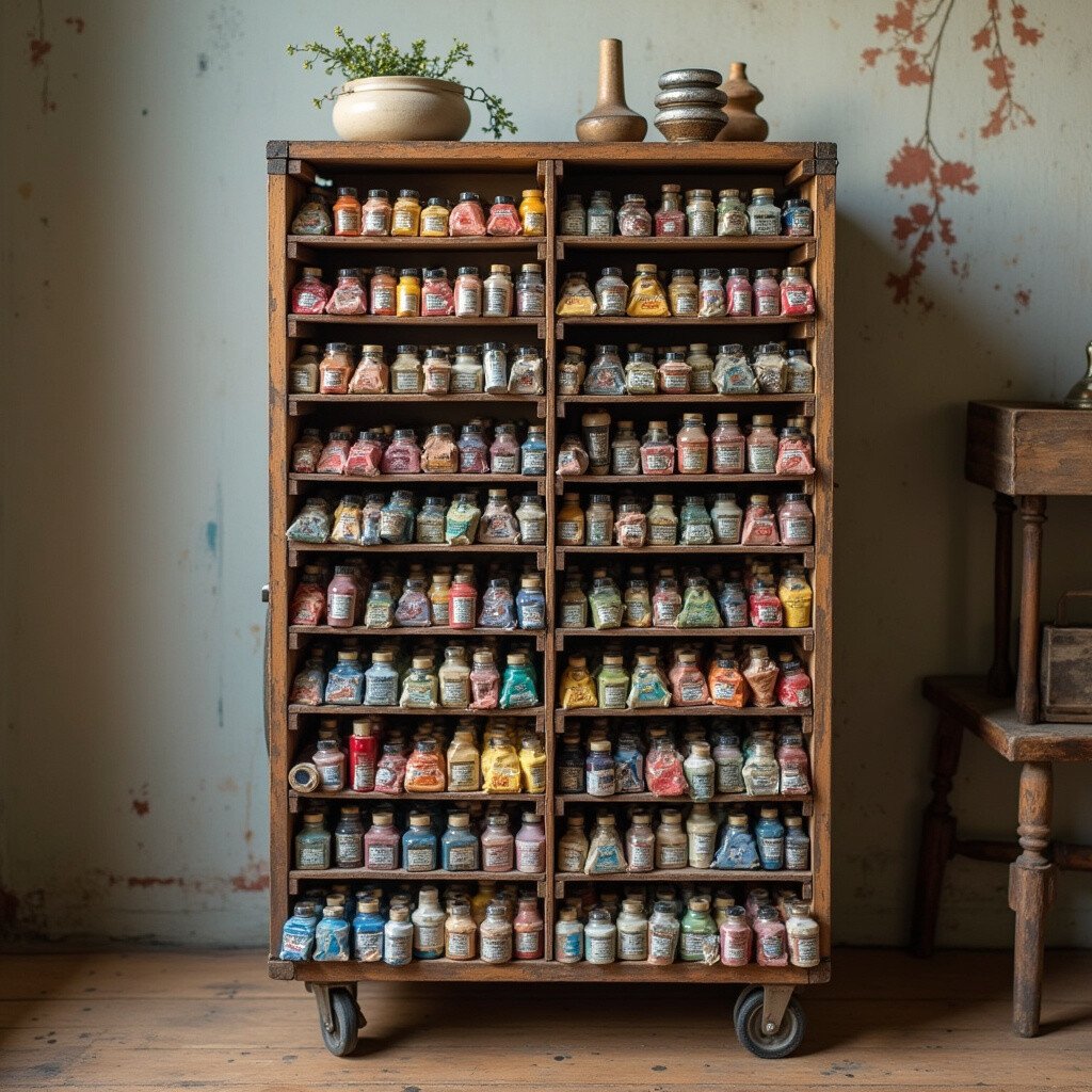 This is a clever way to recycle old furniture. It keeps your paints organized and shows off your collection. You might have one tucked away in your attic, ready to be transformed.