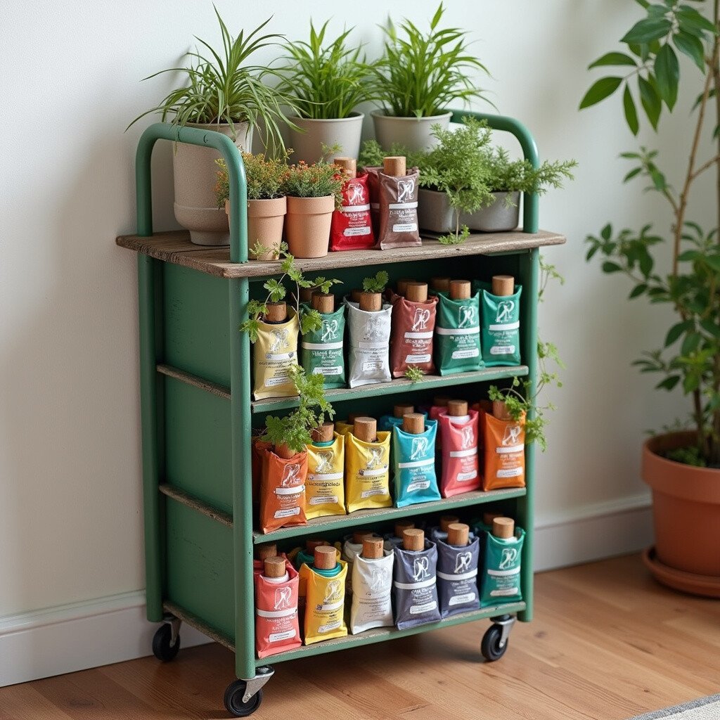 Convert a vertical garden planter into a paint storage unit. Each pocket or section can hold a tube, and it adds a touch of greenery to your space if painted in earthy tones.