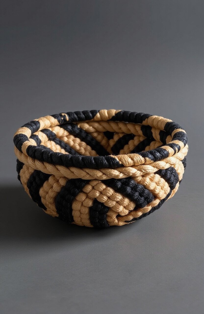 A spiral rope bowl looks mesmerizing. It draws the eye inward, creating a focal point. This bowl is perfect for a modern or minimalist setting.