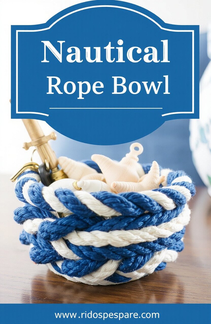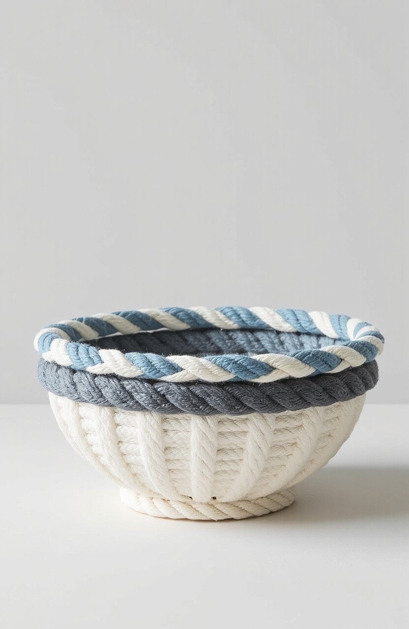 Bring the seaside to your home with a nautical-themed rope bowl. Blue and white ropes create a marine feel. It’s perfect for a beach house or a sea-inspired room.