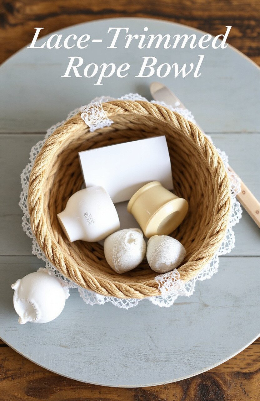 Delicate lace adds a touch of elegance to any rope bowl. It’s a beautiful way to incorporate a vintage feel. A lace-trimmed bowl is perfect for storing delicate items.