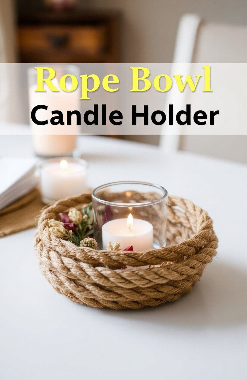 Transform a rope bowl into a cozy candle holder. It’s perfect for creating a warm ambiance. Ideal for a romantic dinner or a relaxing bath.