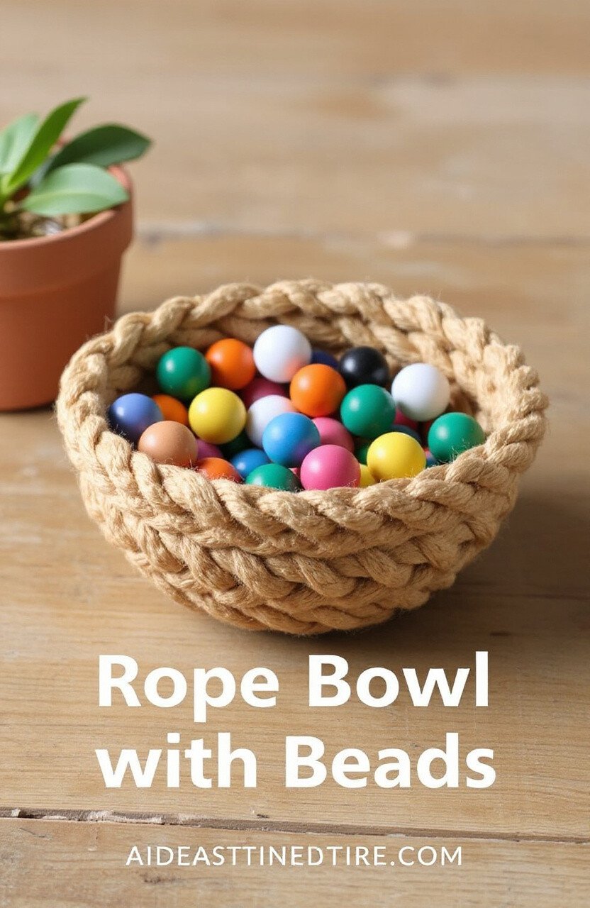 Beads add a playful touch to rope bowls. You can choose colorful beads for a fun look. It’s perfect for holding trinkets or as a decorative piece.