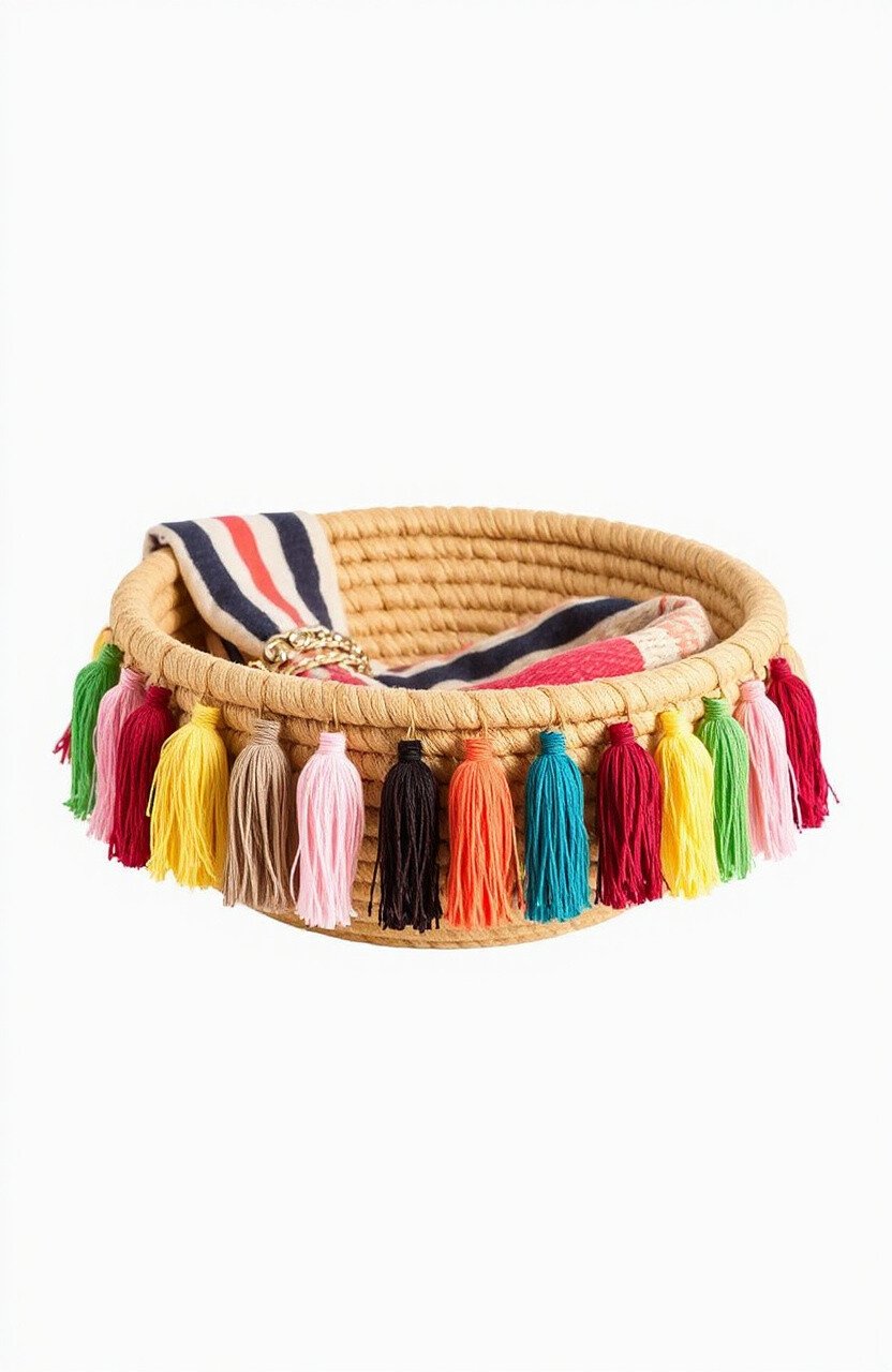 Add some flair with tassels! Tassels can add movement and fun to your rope bowl. It’s perfect for a boho-chic vibe.