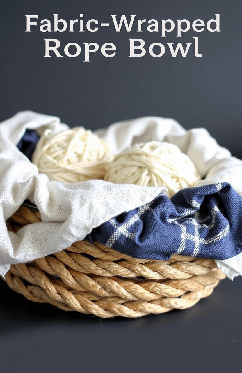Combine fabric with rope for a soft, textured bowl. It’s like wrapping your bowl in a cozy blanket. Perfect for holding soft items like yarn or fabric scraps.
