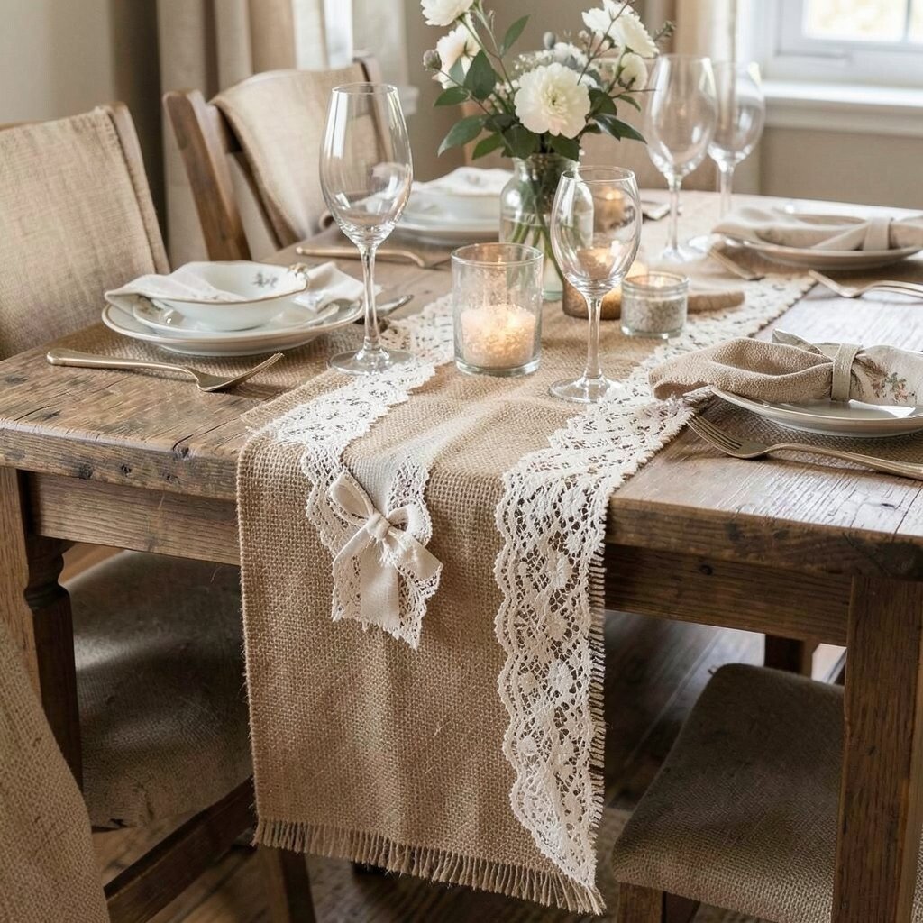 You can embellish it with lace or ribbon for a personalized look. Burlap runners are budget-friendly, usually costing around $10 to $30, and can be used for both everyday meals and special occasions.