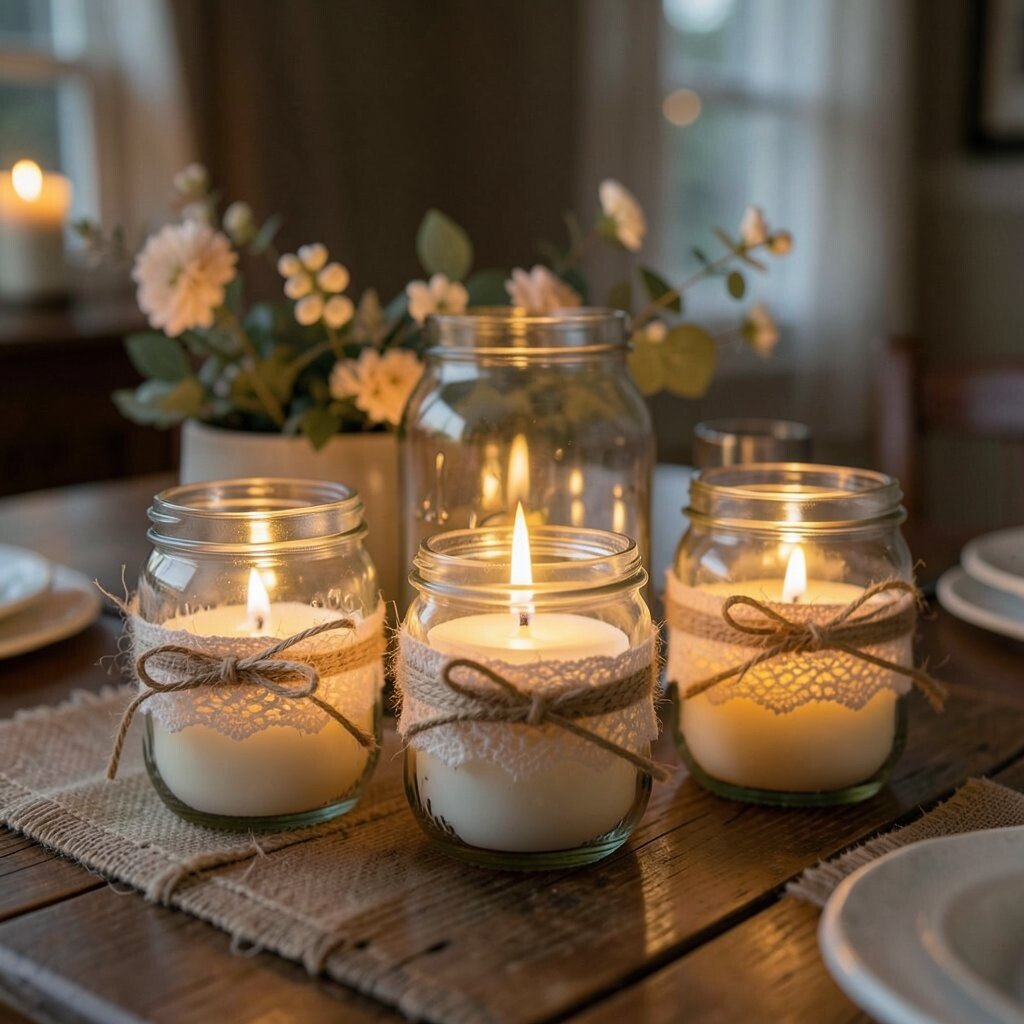 Mason jar candle holders bring a soft, romantic glow to any room. Imagine a cozy evening with the warm flicker of candlelight dancing through the glass. They are perfect for a dinner table centerpiece or a relaxing bath.