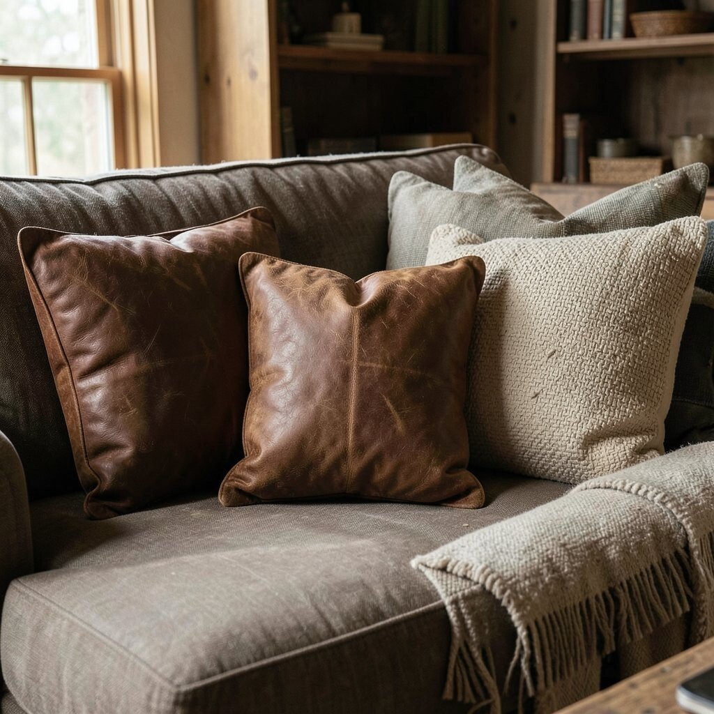 Mix them with fabric pillows for a layered effect. Leather pillows are durable and stylish, ranging from $30 to $100 each.