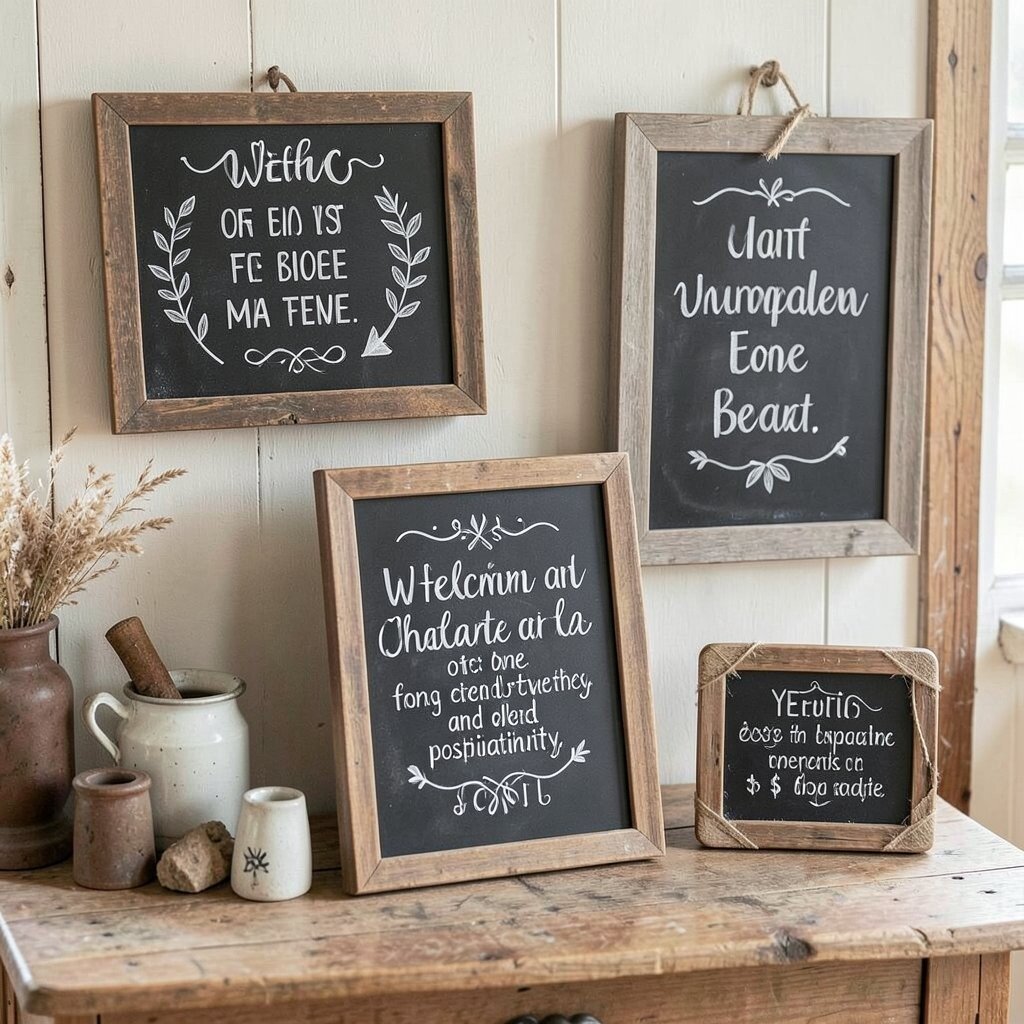 Chalkboard signs add a playful and personalized element to your decor. Use them for menus, welcome messages, or inspirational quotes.
