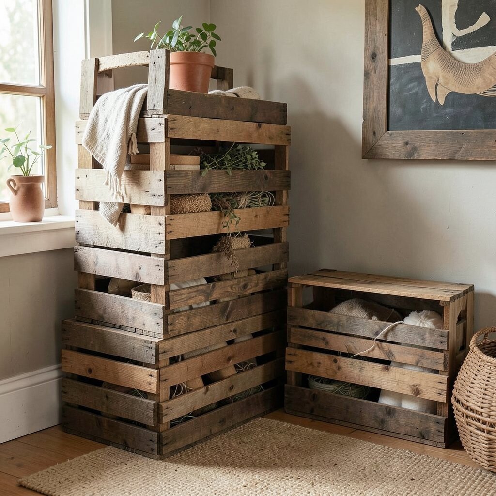 16. Wooden Crate Storage