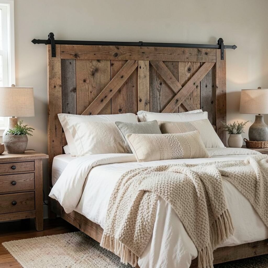 A barn door headboard can make your bedroom feel like a rustic retreat. Its large, wooden planks create a bold statement and add a touch of countryside charm to your space.