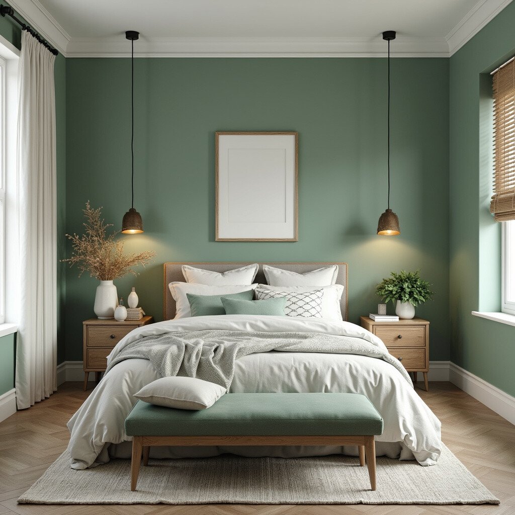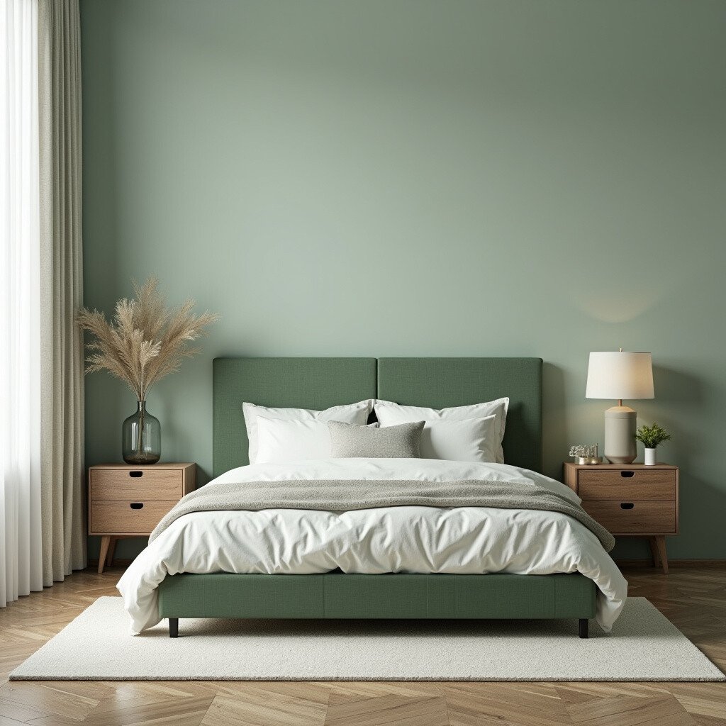 This idea works well in both modern and traditional settings. Sage green adds a touch of elegance and sophistication to any space. Pair it with neutral bedding and decor for a balanced look.