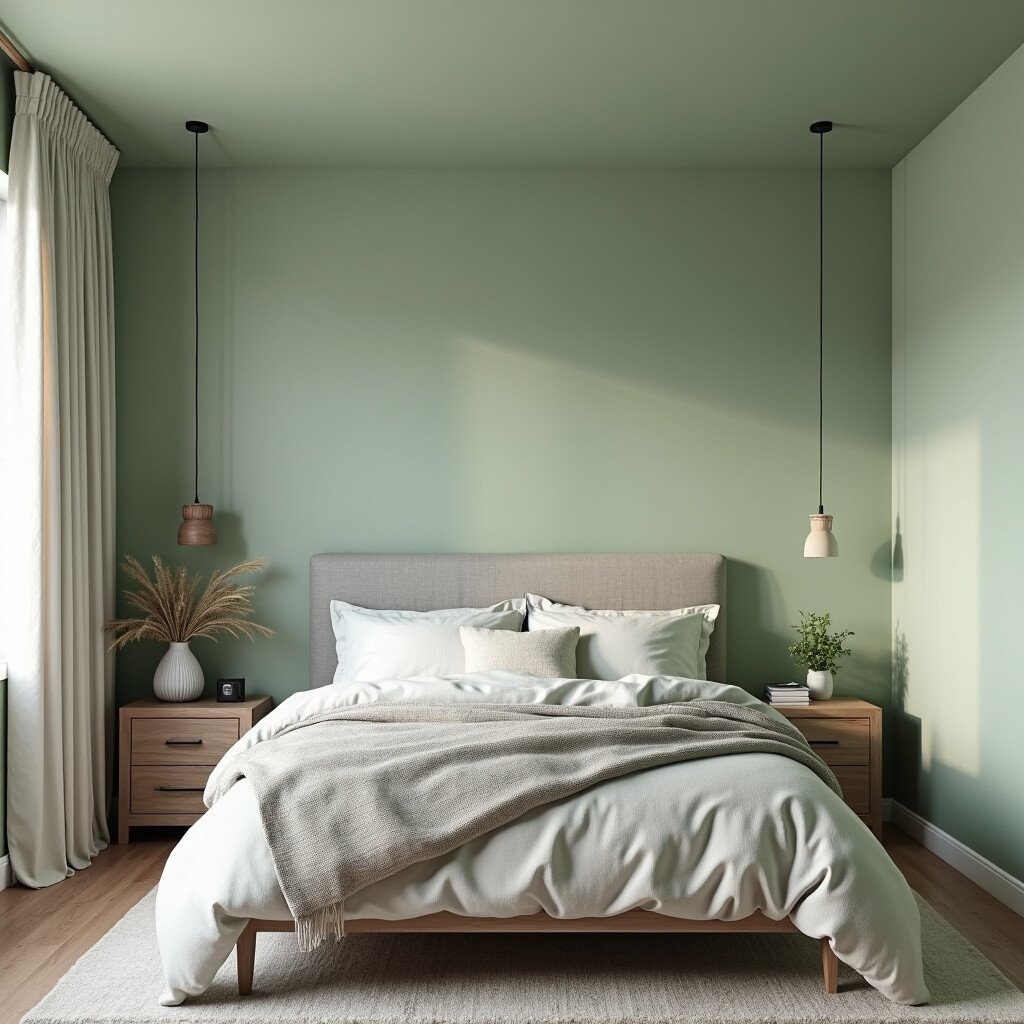 This idea works particularly well in modern or minimalist spaces. The subtle hue of sage green adds a touch of elegance without being overpowering. Pair it with neutral bedding and decor for a balanced and harmonious look.