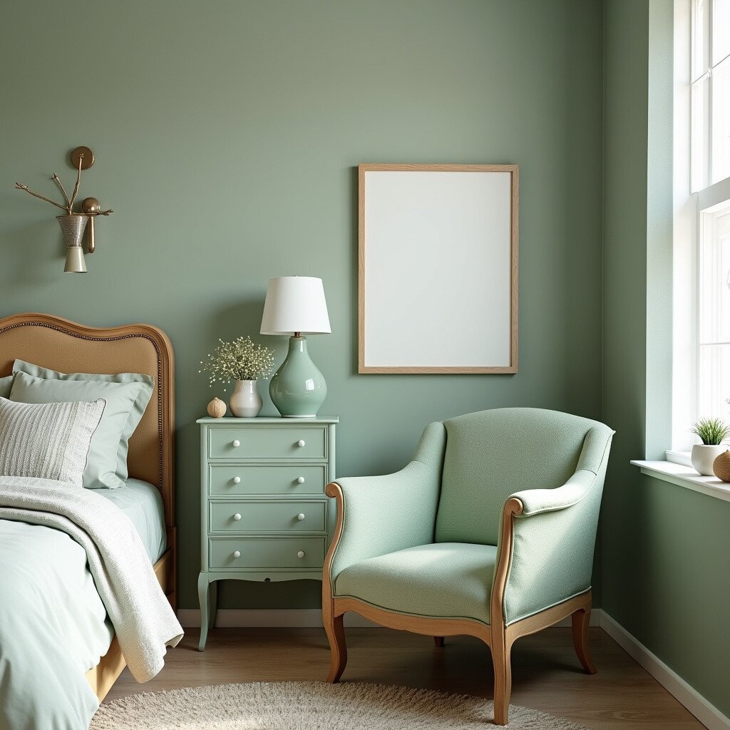 This idea works well in both modern and traditional settings. Sage green adds a touch of sophistication and elegance to any space. Pair it with neutral bedding and decor for a balanced look.
