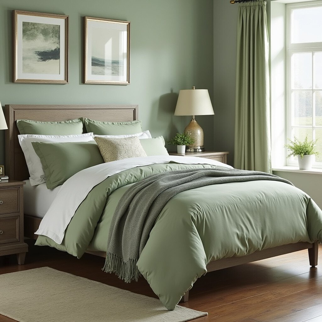 1. Cozy Sage Green Bedding