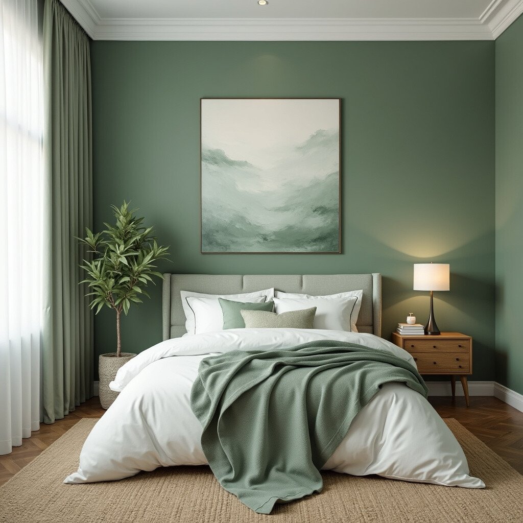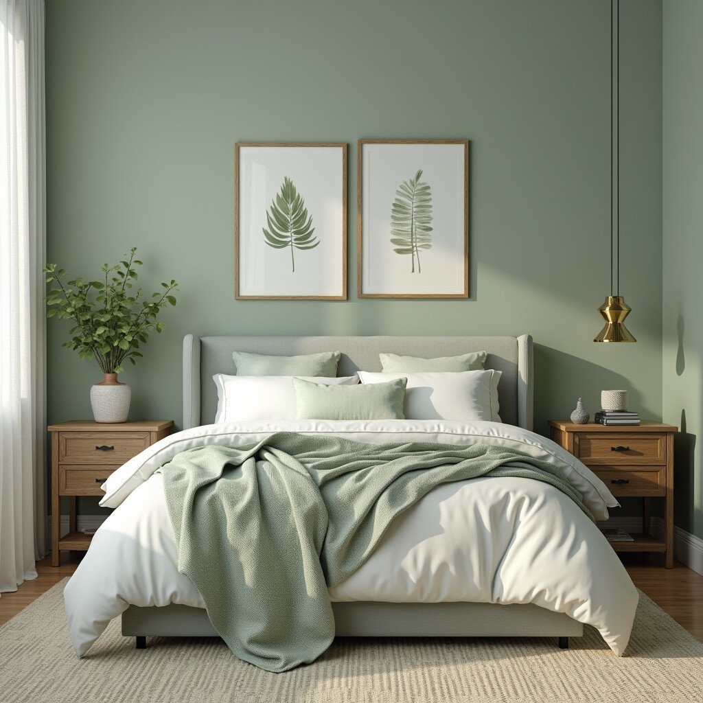 Wall art in sage green can add a touch of elegance to your bedroom. Whether it’s a painting, a print, or a tapestry, this idea is perfect for art lovers. Choose pieces that resonate with your personal style for a cohesive look.
