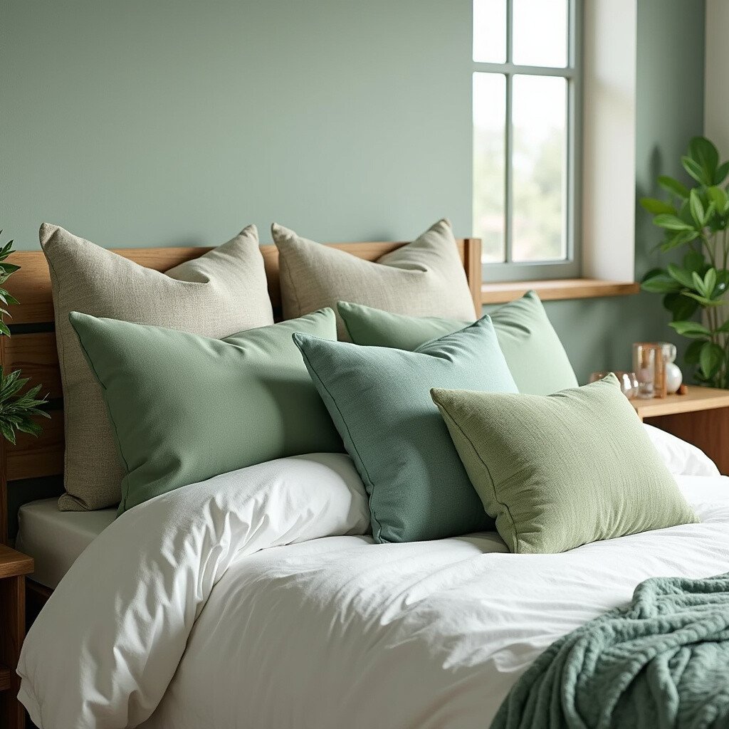 Throw pillows in sage green can instantly elevate your bedroom decor. They’re perfect for adding a pop of color to your bed or a cozy reading nook. Mix and match different sizes and textures for a dynamic look.