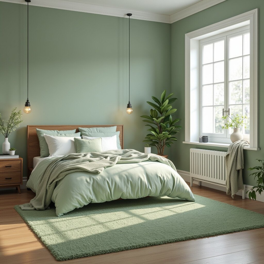 Imagine stepping out of bed onto a plush sage green area rug. It’s like having a little piece of meadow in your bedroom. This idea is great for adding warmth and texture to your space.