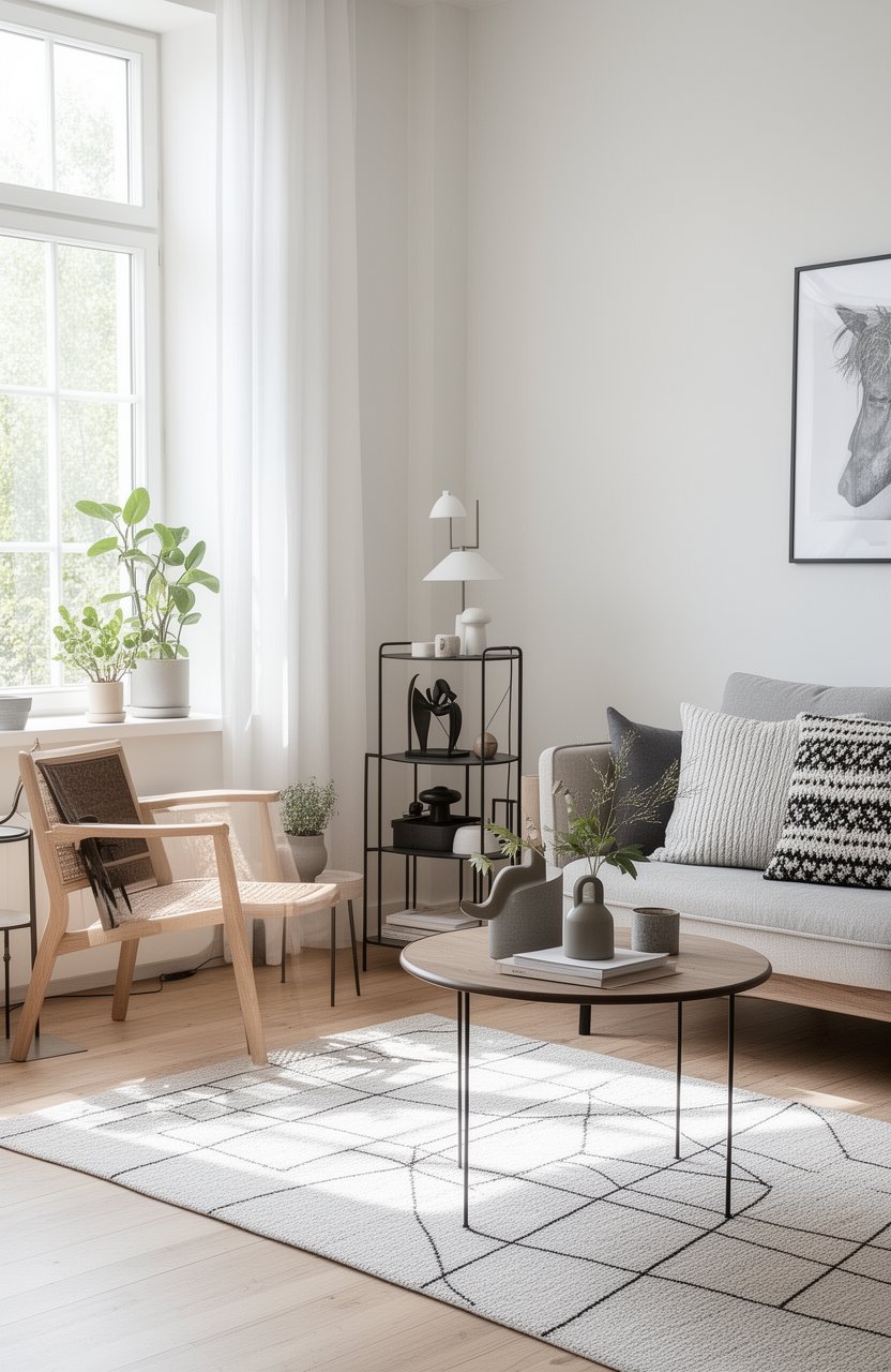 Minimalist artwork complements the clean lines of Scandinavian decor. Think simple prints or abstract designs. Black and white or muted colors work well.