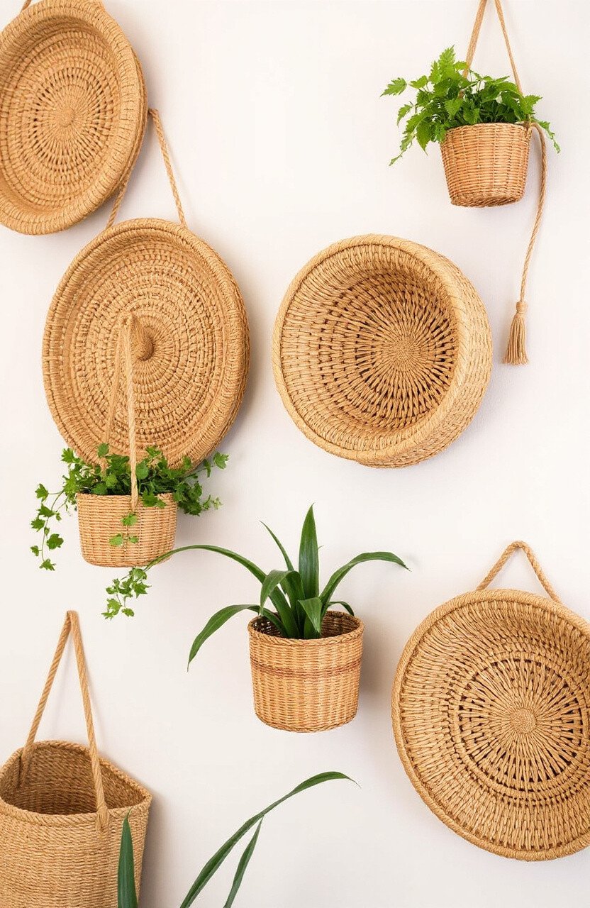 Choose different sizes and create an interesting pattern on your wall. It’s like making a mural with baskets, giving your room a unique personality.