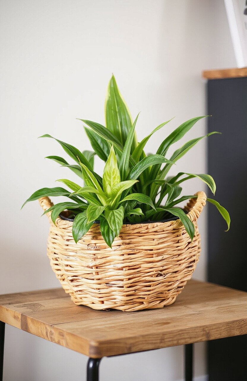 Choose a basket with a plastic lining to prevent water damage. This way, you can water your plants without worry. It’s a lovely way to show off your green thumb!