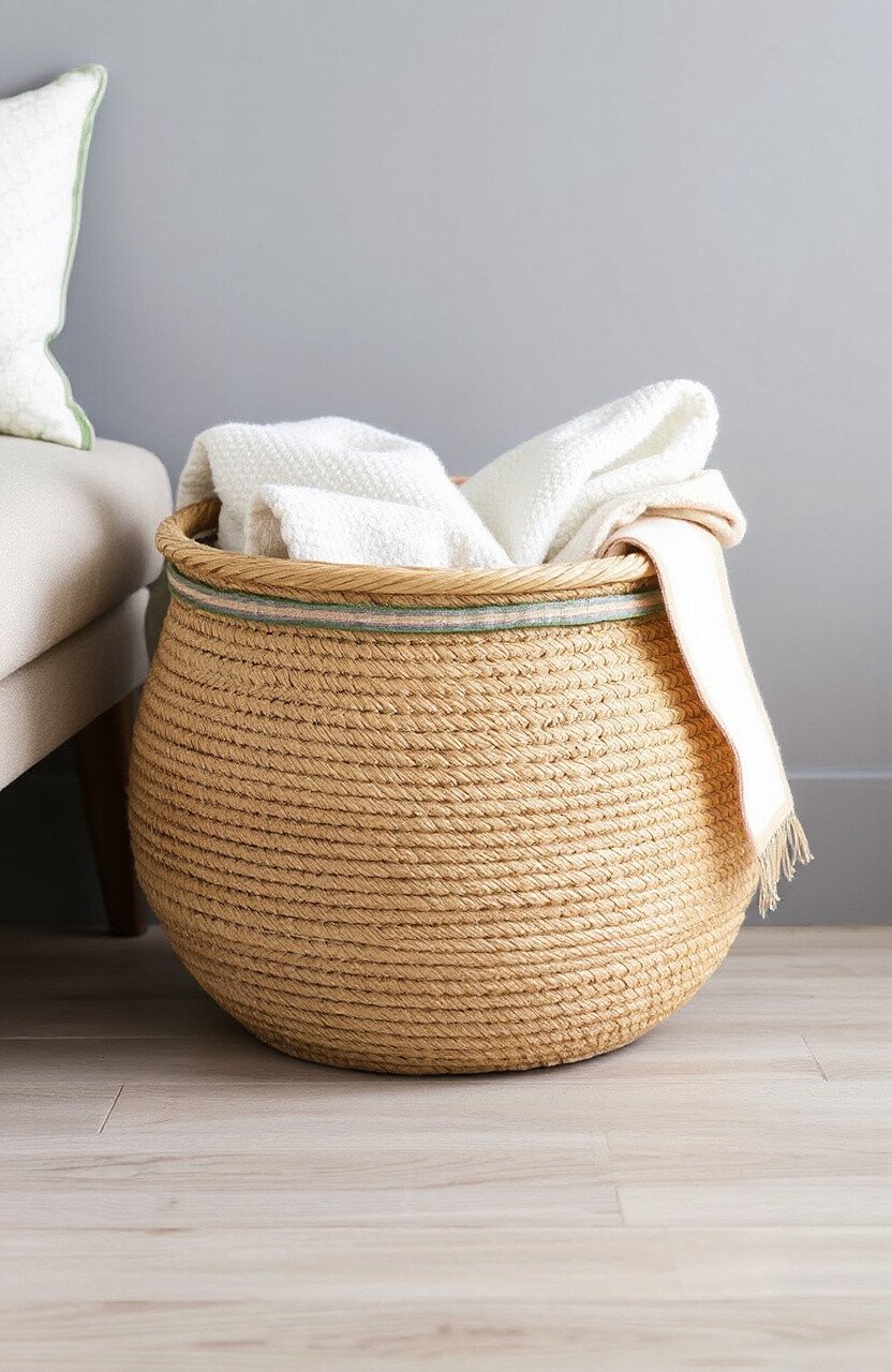 For a modern twist, try a seagrass basket with a metal frame. The contrast between metal and seagrass creates a striking look. It’s perfect for industrial-style homes.