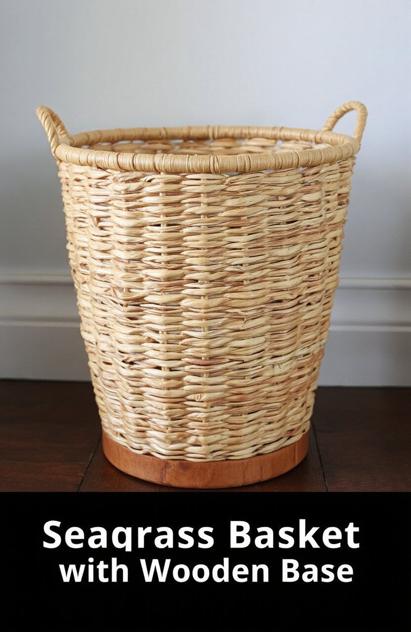 The combination of wood and seagrass is simply stunning. A basket with a wooden base is sturdy and stylish. It’s perfect for holding heavier items like books or magazines.