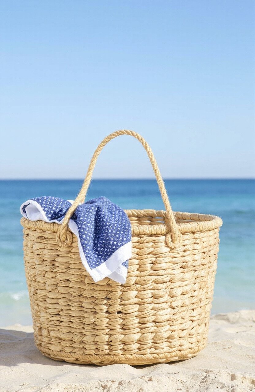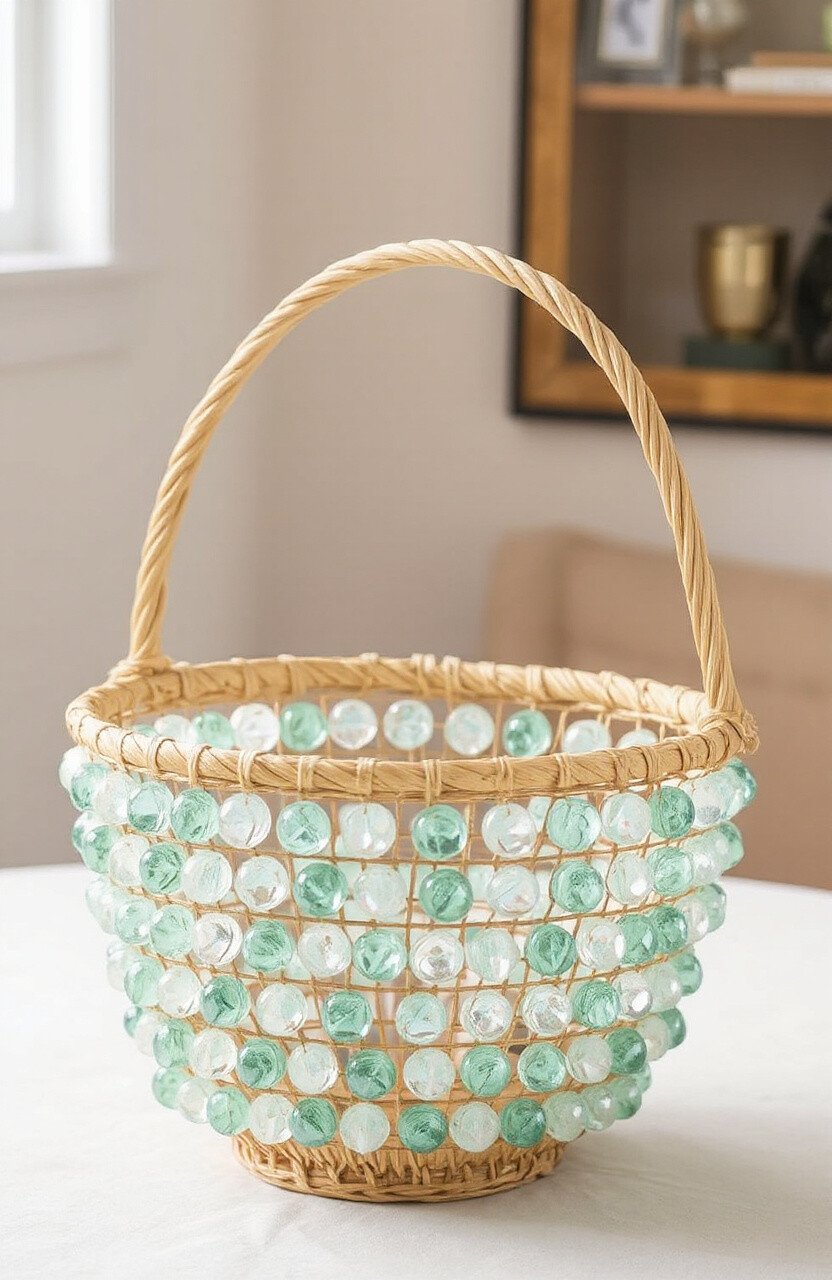 Add a touch of glamour with beads! A decorative seagrass basket with beads is an eye-catching piece. It’s perfect for a sophisticated yet earthy look.
