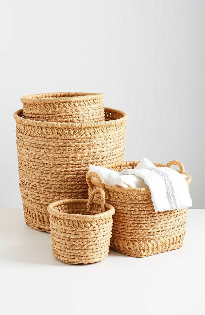 Why have one when you can have a set? Nested seagrass baskets are perfect for maximizing storage. They fit inside each other when not in use, saving space.