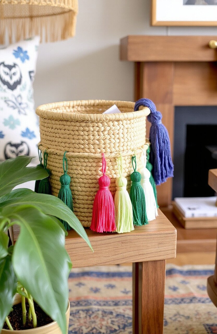 Fringes add a boho-chic vibe to any space. A seagrass basket with fringe is perfect for a laid-back look. It’s great for storing throws or pillows.