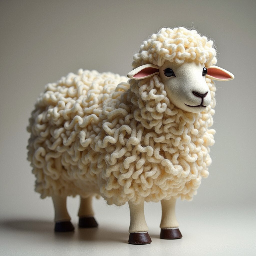 Craft a sheep that looks freshly sheared, showing off its clean, smooth coat. This style is minimalist and highlights the sheep’s natural features.