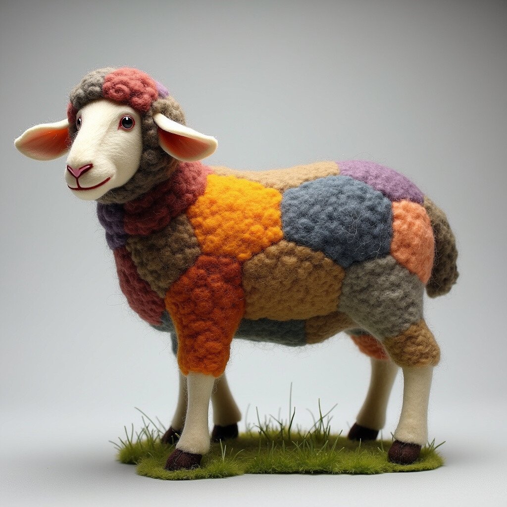 Combine different wool colors and textures to make a patchwork sheep. This design is playful and adds a cozy, handmade feel.