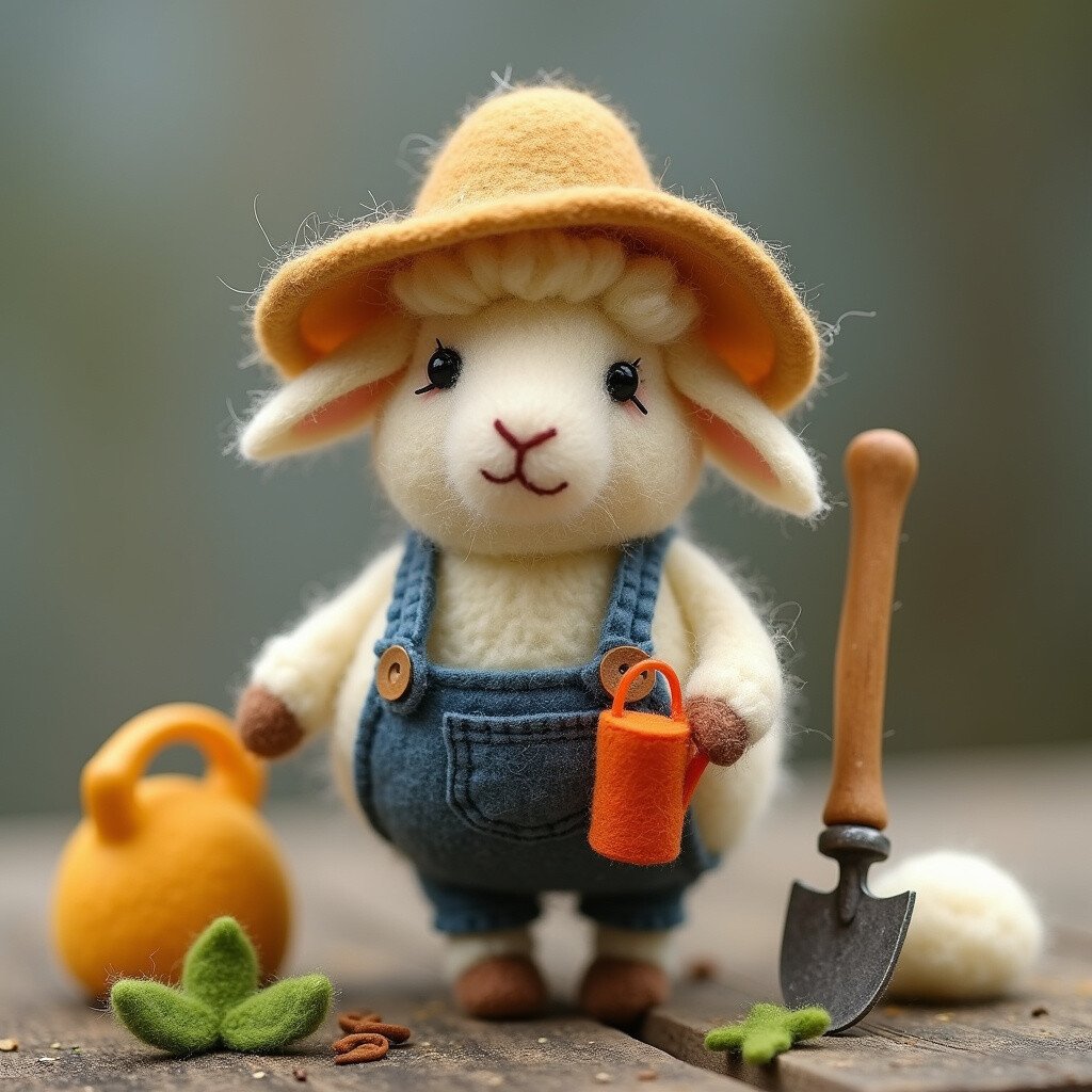 Imagine a sheep dressed as a farmer, complete with a tiny felted straw hat and miniature tools. This adorable character is ideal for a country-themed decor.