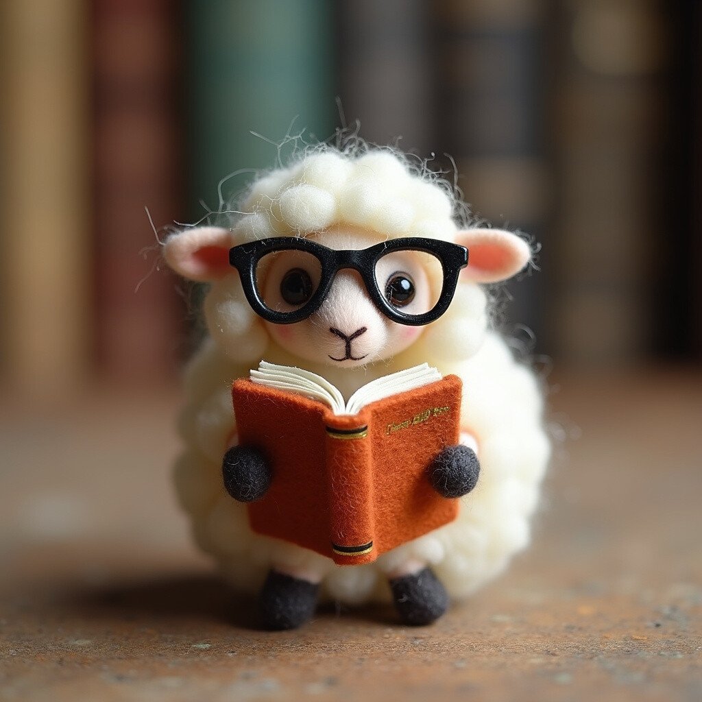 The magic of this creation is in the tiny details, like the little book and the sheep’s curious expression. It’s a charming companion for those who love reading.