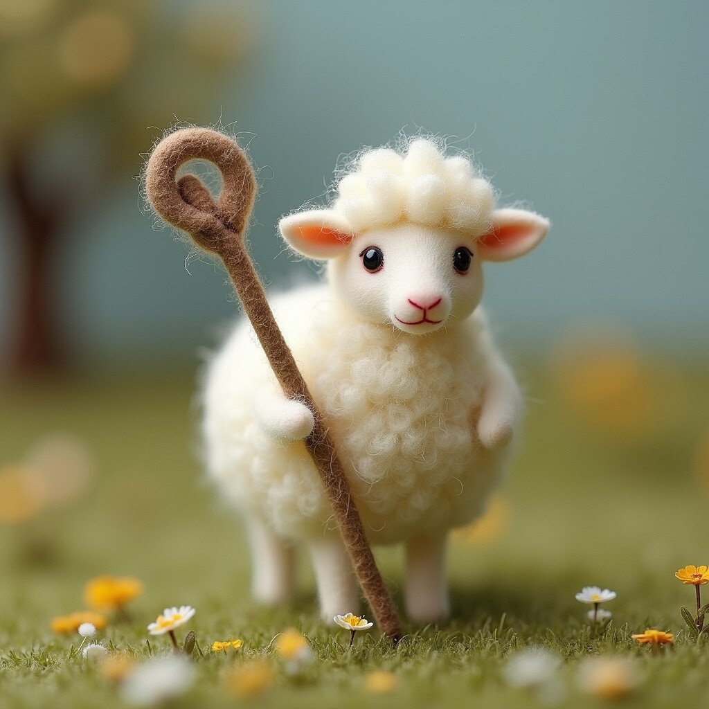 Embodying tranquility and guidance, this sheep carries a tiny felted staff. It’s an ideal piece for those who appreciate pastoral simplicity.