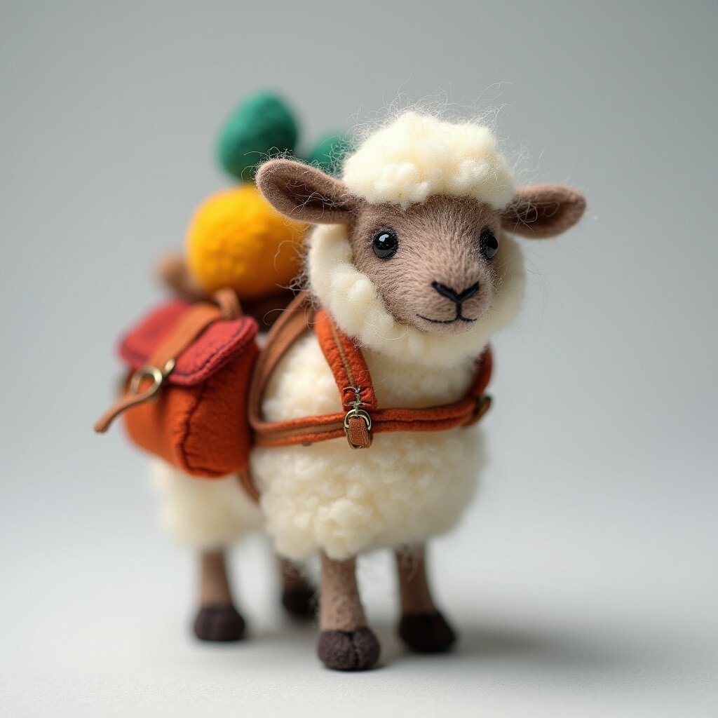 This adventurous sheep is ready for a journey, with a tiny felted backpack. It’s an inspiring piece for those who love to travel.
