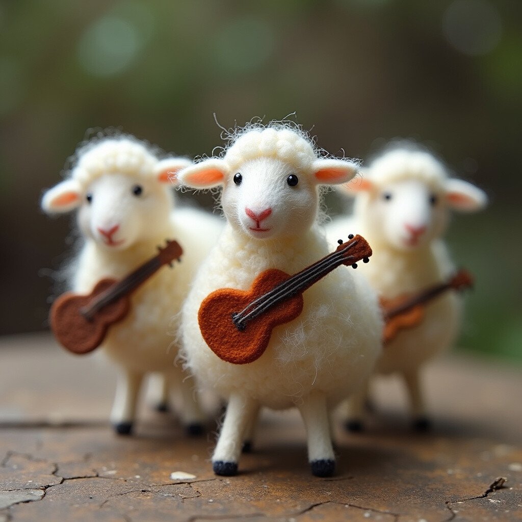Bring the sound of music to your collection with musical sheep. Equip them with tiny felted instruments like guitars, drums, or violins. They’re sure to be a hit with music lovers!