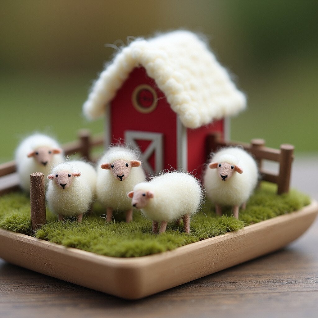 Create your own little sheep farm with a variety of felted sheep. Include a mix of adults and lambs to make it more realistic. Add a felted barn and a fence for the full farm experience.