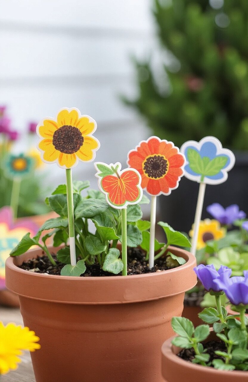 They’re not just practical but also add a whimsical touch to your garden. Use bright colors or nature-inspired designs for a cheerful look. Economical and easy to personalize, they’re a gardener’s delight.