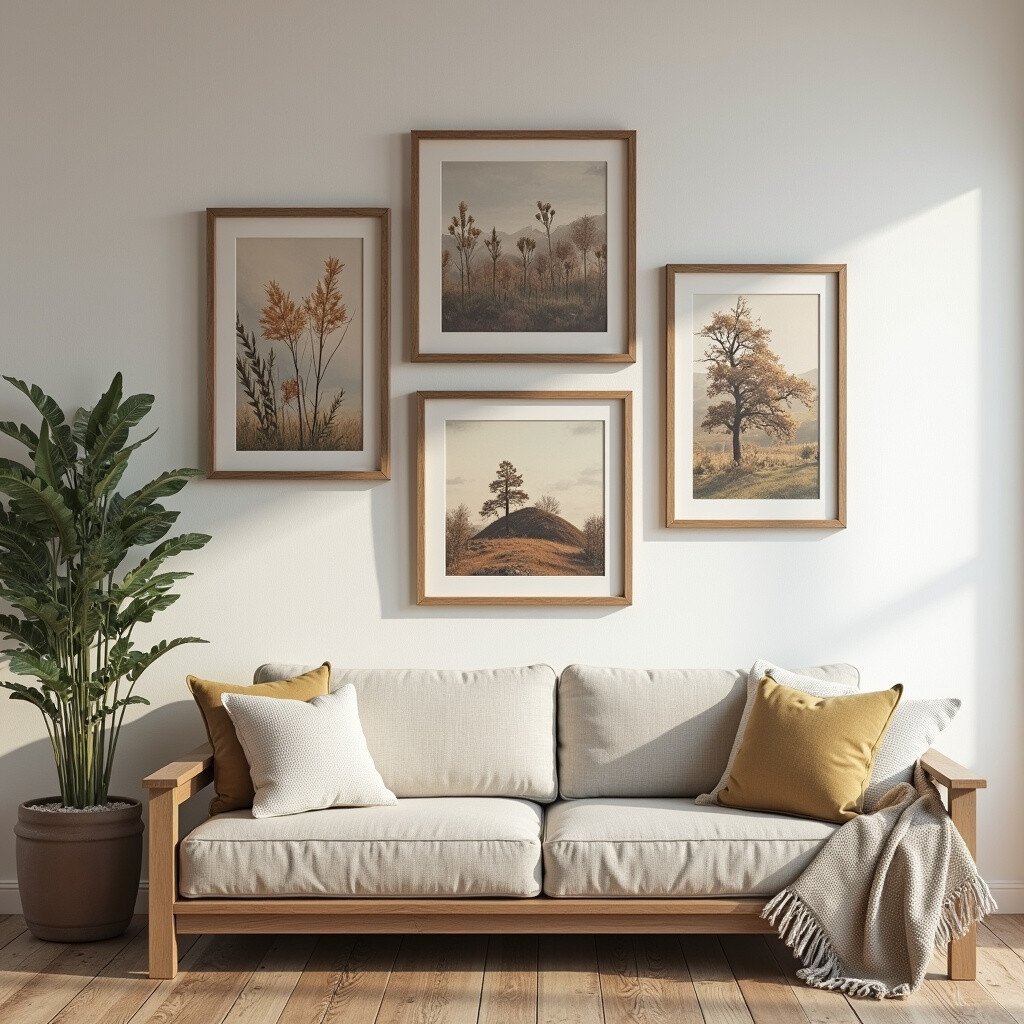 Rustic decor adds character and is perfect for homes with a natural or farmhouse aesthetic. It’s easy to achieve with reclaimed wood frames or DIY projects. This idea is budget-friendly and offers endless possibilities for personalization.